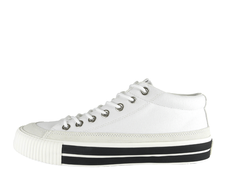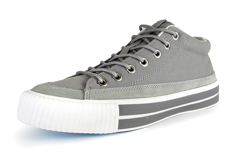 RFWを代表するモデルの一つBAGEL-MIDから初期に製作したキャンバス&スエードのモデル「STD」をアップデートさせました。BAGELの特徴であるミッドカットスニーカーはくるぶし丈で履き口がすっきりと作られており、シューレースを締めると足全体を優しくホールドしてくれます。履き口周りにはパッドが入っているので、フィット感は抜群です。またソールに配置した2本の太い黒いラインもポイントです。アウトソールはRFWのブランドカラーのシアンブルー(水色)になります。クッション性のあるPUインジェクションのカップインソールが足への負担を軽減し、快適な歩行をサポートします。アウトソールはしなやかながら耐久性の高いラバーソールになります。