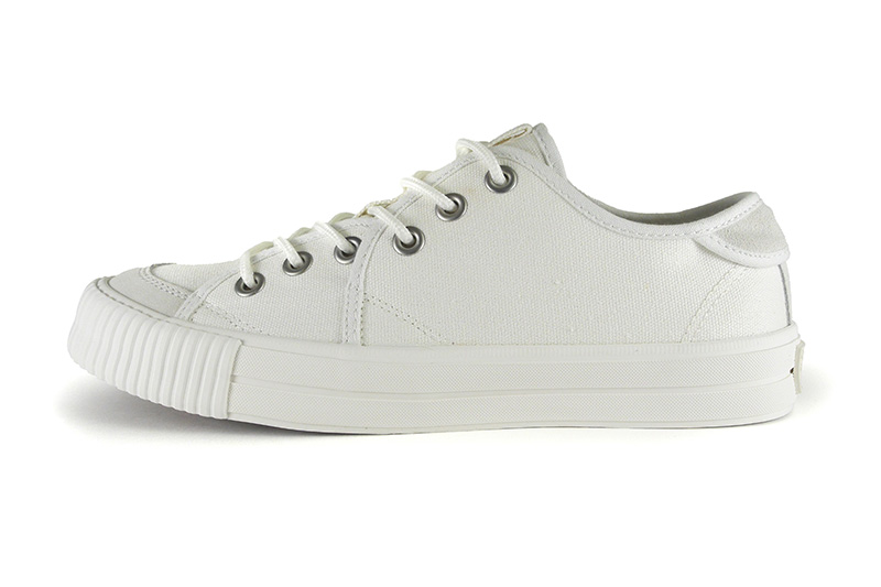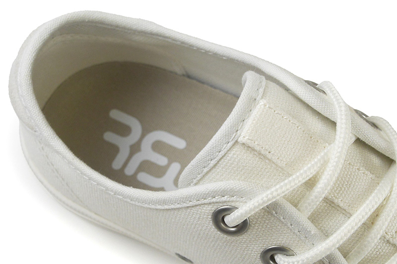 シンプルでありながら、個性的なデザインが特徴のキャンバススニーカー『SANDWICH』。2025AWの新作『SANDWICH-LO HRG1』は、初期に製作したキャンバス&スエードのモデルをアップデートして復活しました。HRG1はアッパー、ヒモ、サイドのゴムテープが全て同色で、ナチュラルで落ち着いた印象になります。SANDWICHとはアッパーのパターンが分かれて構成されており、足全体を包み込む様にホールドしてくれるのが特徴のRFWを代表するモデル。包み込むイメージからサンドイッチという名前が付けられております。アッパー両サイドの羽根が2枚のパーツに分かれている事で、履き口も開きやすく、着脱もスムーズです。インソールを貼り付けのものからPUインジェクションのカップインソールに改良。カップインソールが足全体をサポートし、長時間の歩行でも快適な履き心地を実現しました。